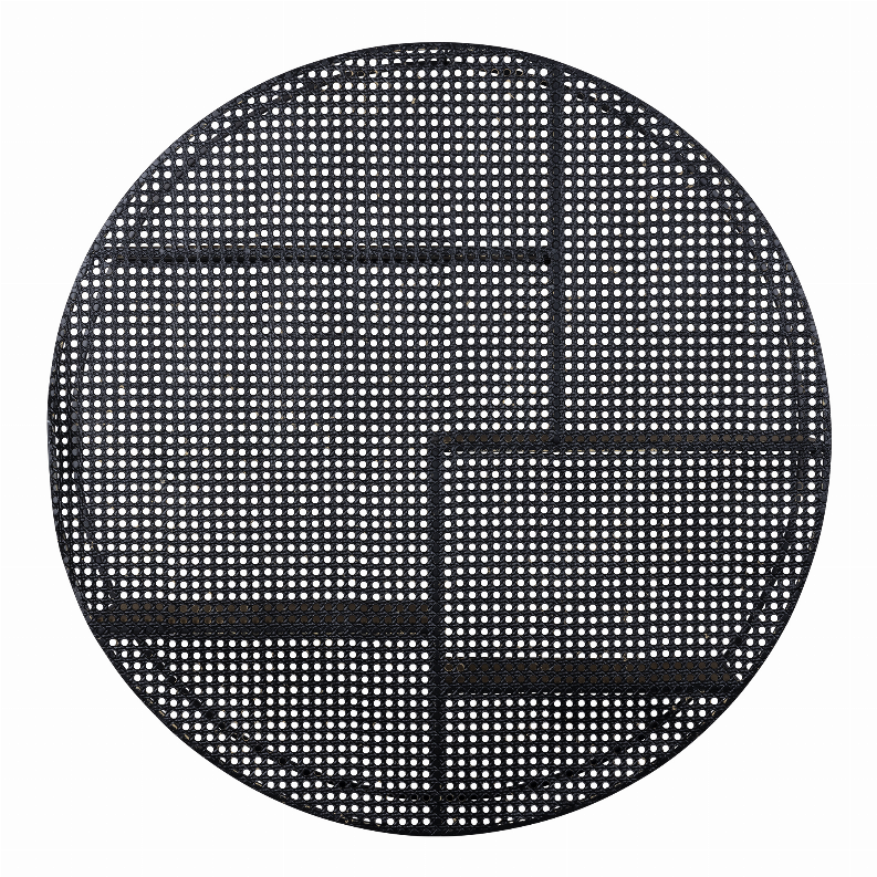 Unveil the tidy and organized look of your home in no time. This 4-tiered wall shelf pops to life with its cane webbing background in tan and matte black metal finish. The shelves stand out with a painted wood-like-looking finish on them.